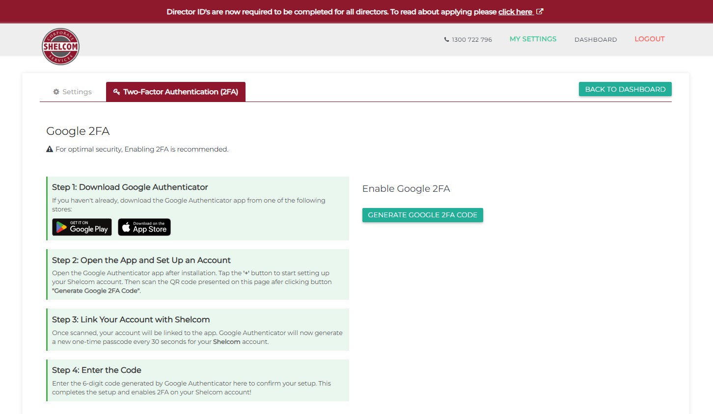Enabling 2FA for your Shelcom Account