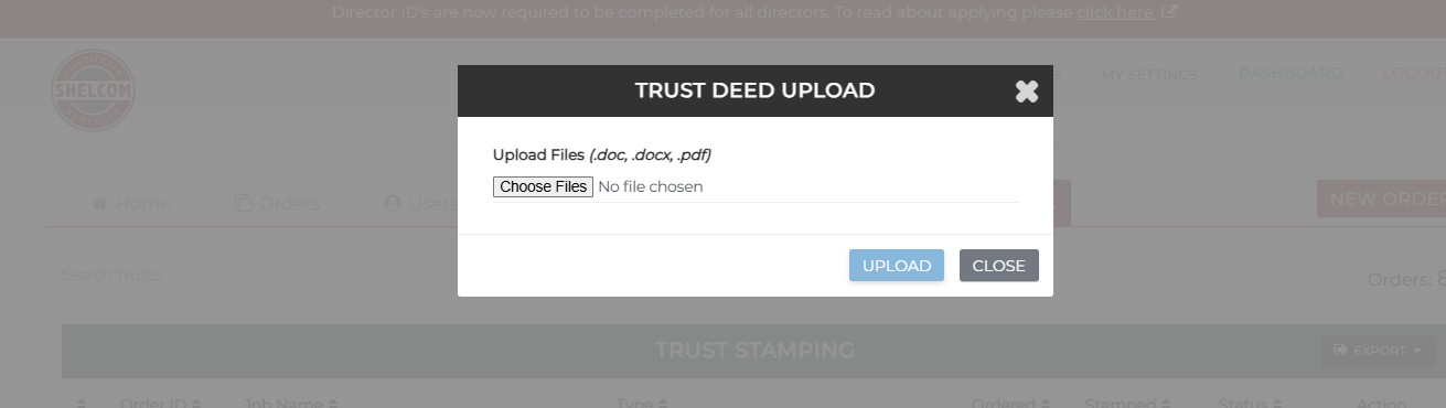 In your Shelcom dashboard, find the trust stampings tab as circled below: